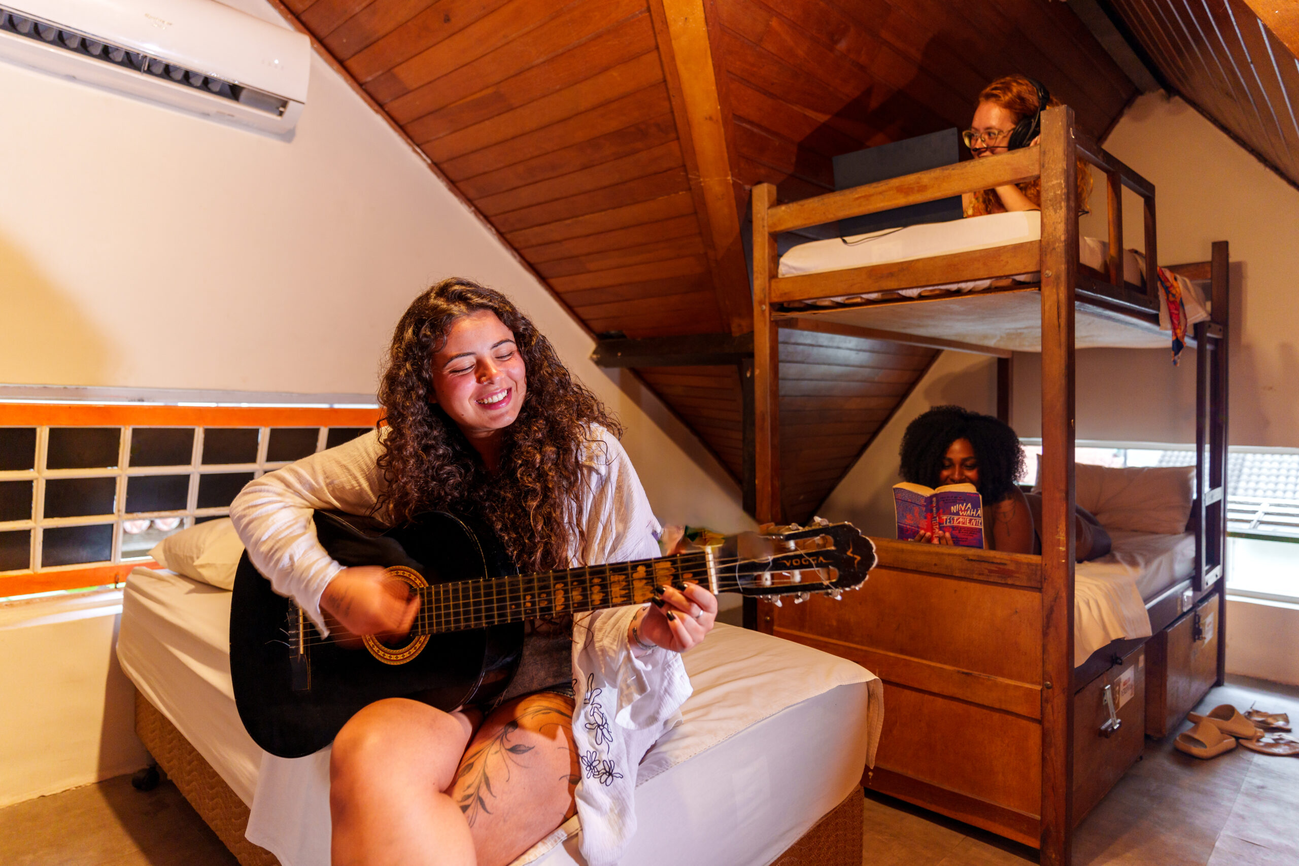 Para quem curte uma vibe mais tranquila e social na medida certa. Nosso dormitório misto é ideal para fazer conexões mais próximas. Uma ótima opção de quarto compartilhado no Rio para quem viaja sozinho e quer conhecer pessoas.